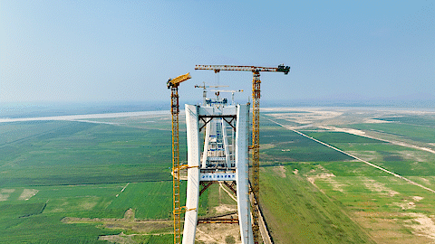 8月16日,由中铁工业旗下中铁山桥、中铁宝桥参建的安罗高速黄河特大桥南北索塔顺利封顶,标志着黄河特大桥钢塔施工部分正式竣工。