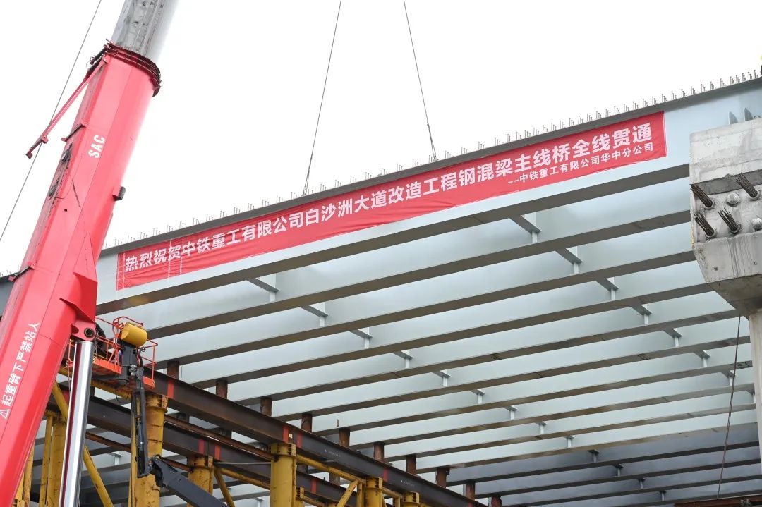 近日,由中铁工业旗下中铁重工参建的武汉白沙洲大道改造工程钢混梁主线桥全线贯通。公司负责白沙洲大道快速化改造工程钢-砼组合梁及钢箱梁的制作及安装,共生产29180吨钢梁。