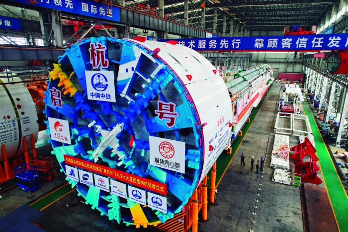 | 长约140米的超大直径“启杭号”盾构机 | |
