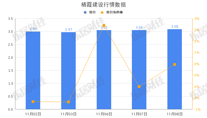 截至11月08日,栖霞建设(600533.SH)股价收盘报3.05元,涨0.98%,总市值32.34亿元。