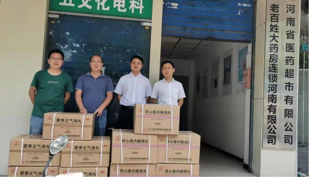 天士力公益基金会紧急联合国台酒业公司、天士力医药商业公司,连夜调拨125箱藿香正气滴丸、120箱穿心莲内酯滴丸、30箱柴胡滴丸及10500箱C胞活力小分子矿泉饮品等物资,日夜兼程,火速驰援受灾一线。7月22日,满载着爱心与希望的天士力首批救援物资运抵河南。