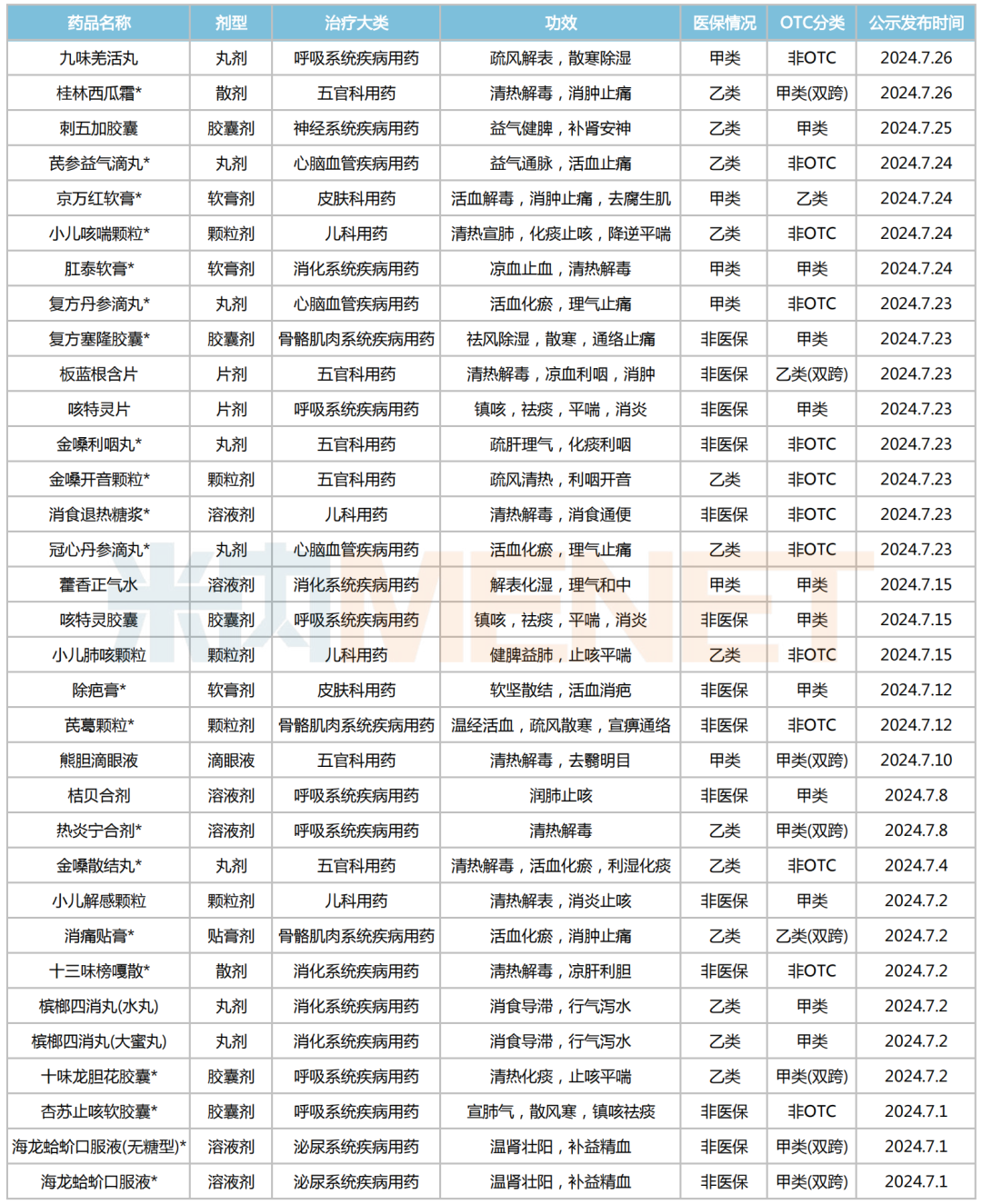 今年7月ChPC公示的国家药品标准中成药名单(带*为独家品种)