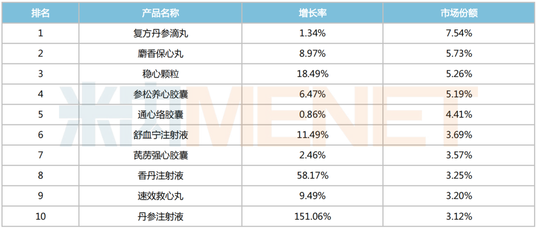 2023年中国三大终端六大市场心血管疾病中成药产品TOP10