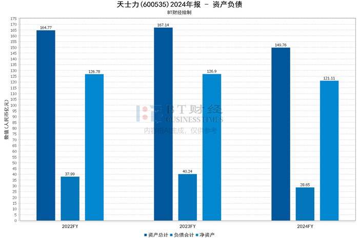 2024年,天士力总资产为149.76亿元,较年初下降10.40%,主要由于货币资金减少和商誉减值等因素。负债总额为28.65亿元,较年初下降28.81%,资产负债率从年初的24.08%下降至19.13%,显示出公司在偿债能力上的显著改善。公司通过偿还借款等措施优化了资本结构,降低了财务风险。
