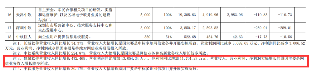 财报披露,2021年上半年,麒麟软件营收同比增长472.46%,营业利润同比增加1.31亿元,净利润同比增加1.17亿元,实现扭亏;业绩大幅增长的原因主要是该公司网信业务收入增长较多所致。