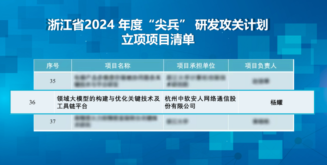近日,浙江省科技厅发布《2024年度“尖兵”“领雁”研发攻关计划拟立项项目清单》,由中国软件所属安人股份牵头,联合之江实验室等单位申报的《领域大模型的构建与优化关键技术及工具链平台》成功入选本次“尖兵”研发攻关计划项目,是安人股份继承担2023年度浙江省“领雁”计划项目后的又一进展,也是在人工智能领域大模型技术研究的新突破。