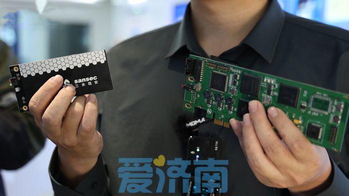 杨国强拿起两个密码板卡介绍道,“我手里拿的密码板卡分别为第一代和第七代密码卡。第一代密码卡体积较大,密码卡上面存储、通信等多个芯片,基本为国外的芯片;而第七代密码卡体积较小,为单芯片,这一颗芯片就代替了五六颗芯片的全部功能,计算速度也从过去一秒1G提升到一秒10G。”