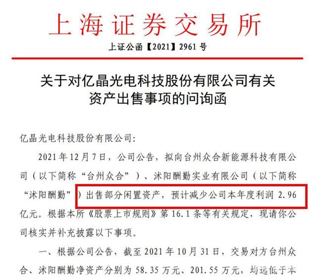 上交所要求亿晶光电核实并说明是否存在关联关系或其他利益安排,本次交易款项支付履约保障措施”等事项,并要求亿晶光电5个交易日内回复。