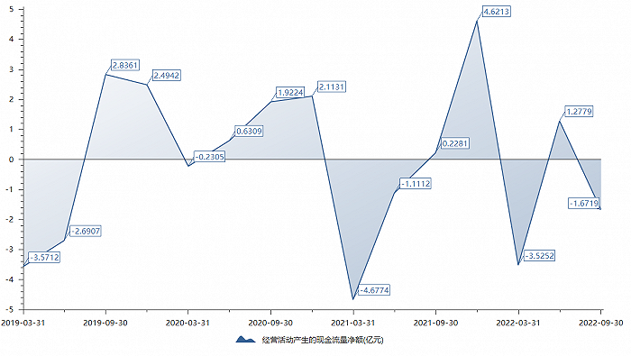 更为重要的是,公司主营业务的造血能力也堪忧。从单季看,2022年第1季度,第2季度和第3季度,公司经营性净现金流仅第2季度为正达1.27亿元,其他2个季度均为负值,在-3.5亿元至-1.67亿元之间。累计看,2022年三季末这一数字为-3.92亿元。2022年三季末,应收账款达11.31亿元,同比增58%;存货10.94亿,同比增84%。