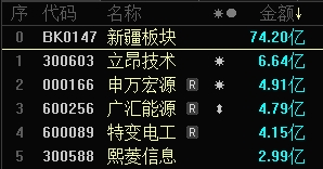 11月7日新疆板块成交额前5位(来自东方财富)。