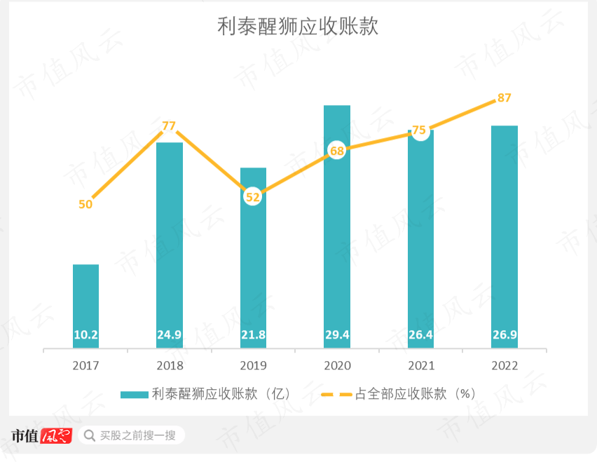 截至2022年,利泰醒狮26.93亿的应收账款账面余额已经有超过98%是一年以上账龄。