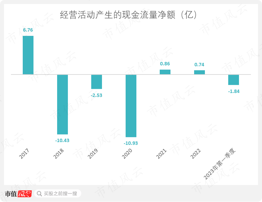 之后五年,没有一年经营性现金流净额超过1亿,2018和2020年更是两度下探至-10亿以下,经营亏得稀里哗啦,钱全从口袋里往外流。和上市前相比,简直就像换了一家公司一样。