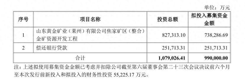 山东黄金彼时发布公告称,公司将非公开发行A股股票募集资金不超过99亿元。其中,73.83亿元用于上述焦家矿区(整合)金矿资源开发工程,另外25.17亿元用于偿还银行贷款。