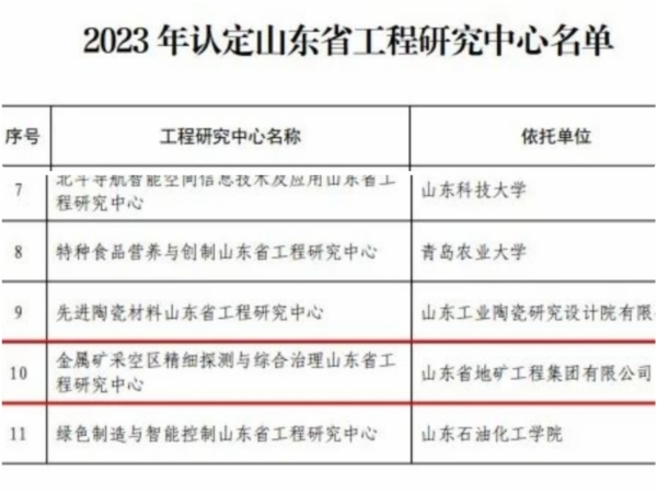 近日,2023年山东省工程研究中心认定名单公布,由山东黄金地矿工程公司申报的“金属矿采空区精细探测与综合治理山东省工程研究中心”成功入选。