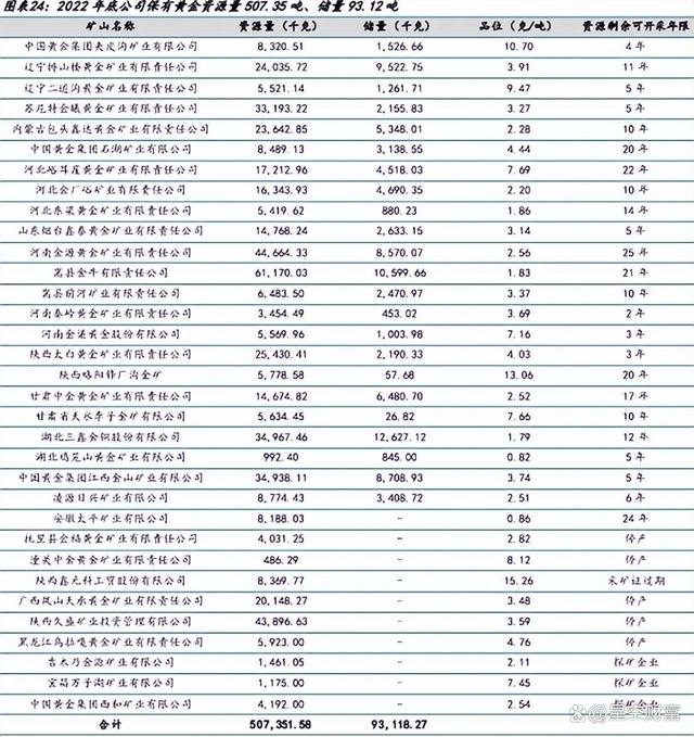 截至2022年底,山东黄金已手握16座矿山,其中山东省内10座,省外4座,国外2座;拥有黄金资源量1431.4吨,平均品位1.73克/吨,权益黄金资源量1318.6吨(权益即按照所有权归属计算的部分)。