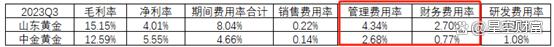 虽然,挂着国企这块金字招牌,山东黄金目前债务暴雷的可能性不大,但即便不考虑偿债风险,巨额负债压顶,也必然蚕食利润。2023年Q3,山东黄金财务费用率2.7%,已较中金黄金高了近2个点。