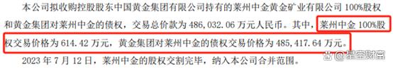 不过,中金黄金收购控股股东资产,按照净资产实际价值交易,不会产生商誉(莱州中金100%股权仅作价614.42万,不过中金黄金一并接手了黄金集团对莱州中金的债权,作价48.54亿)。这一点,与山东黄金溢价百亿形成鲜明对比。