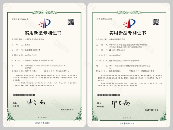 近日,从国家知识产权局获悉,山东黄金所属红岭矿业公司自主研发的“一种尾矿库水位监测设备”、白音呼布矿业公司自主研发的“一种地质勘探用支架”获得国家实用新型专利授权。