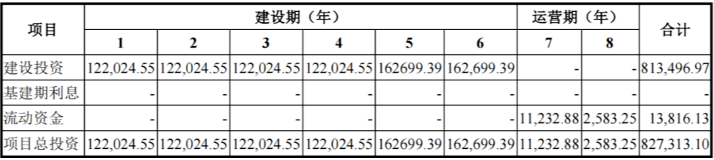 根据公告,本次募投项目建设期就要6年,每年分摊的投资金额只不过十多亿元。