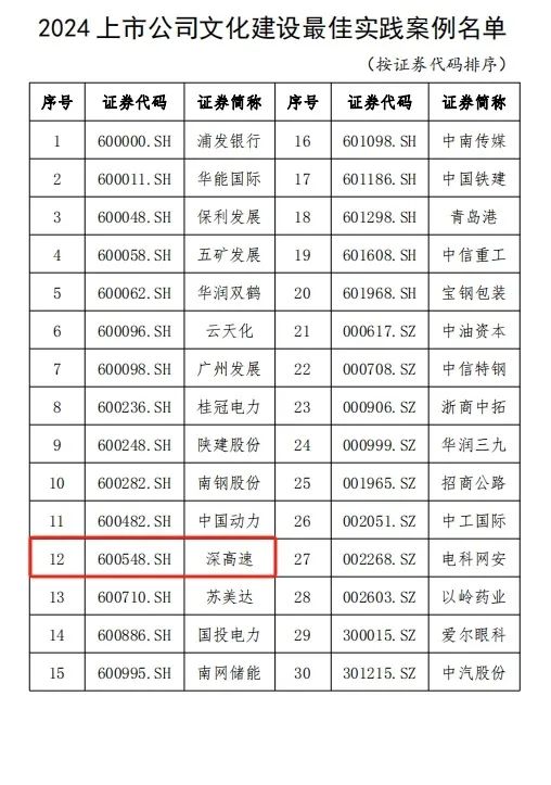 深高速“党建领航、文化赋能456工程”获评“最佳实践案例”,是深圳市属国有企业唯一上榜单位。