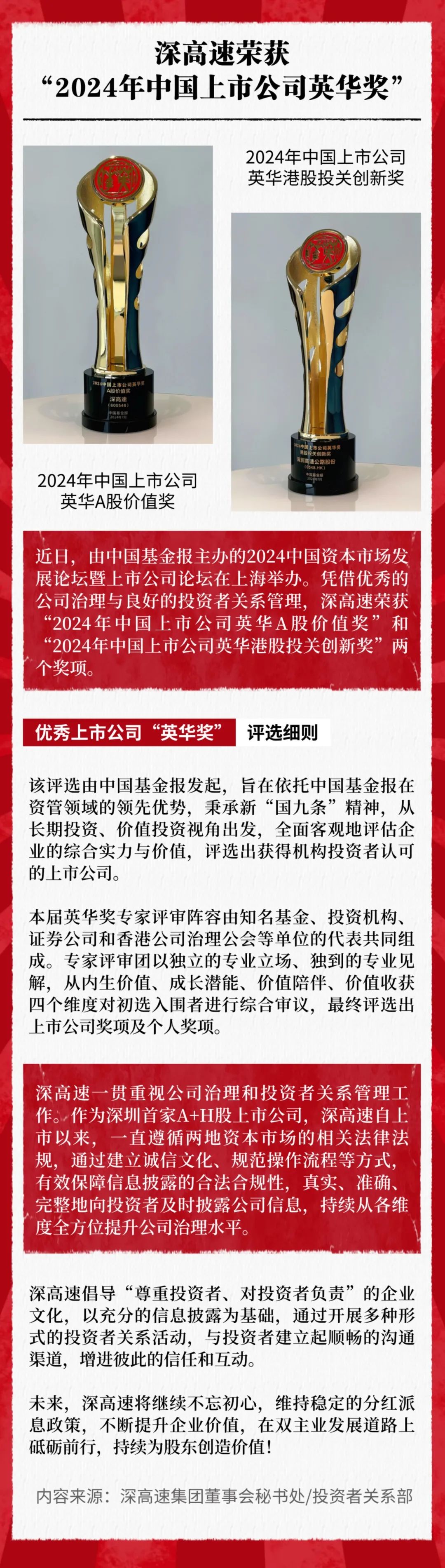 荣誉捷报 | 深高速集团荣获2024年“中国上市公司英华奖”
