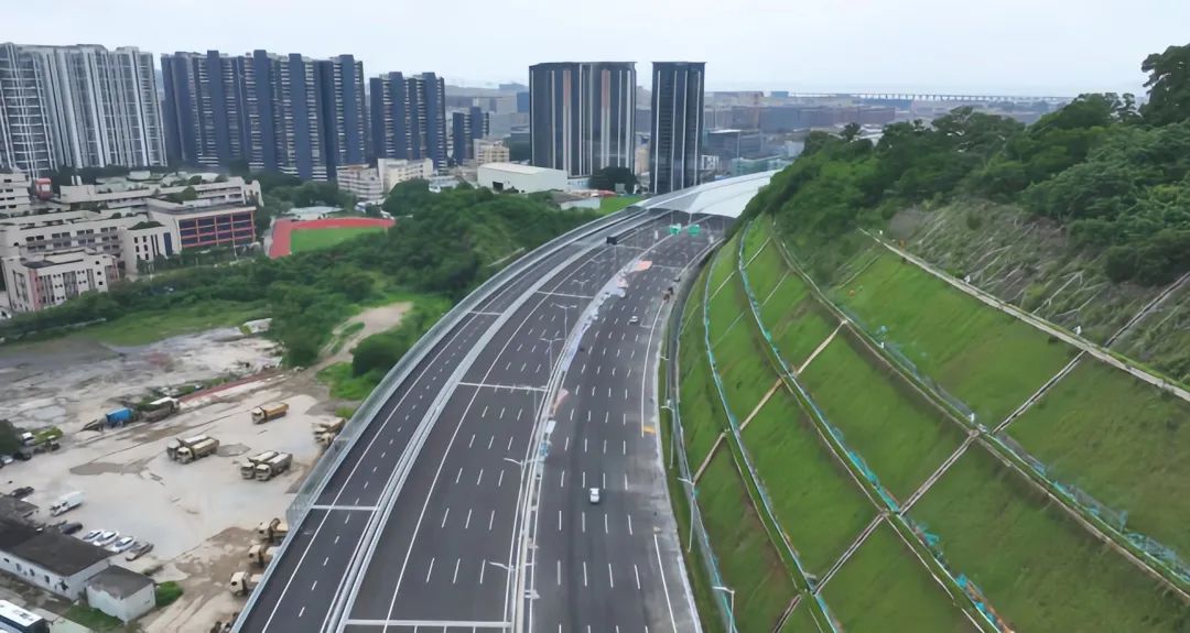 它于繁茂的闹市中生长出蜿蜒曲折的茁壮根系,以极具生命力的通路将深中通道与机荷高速紧密相连。