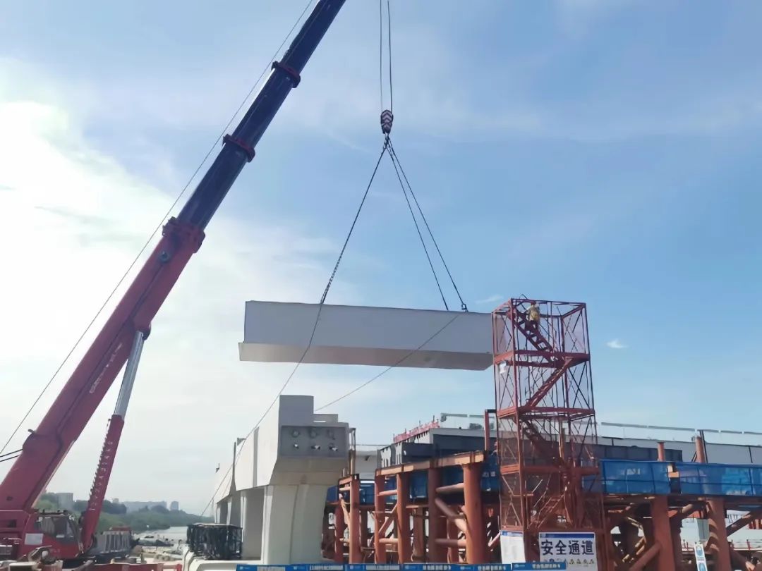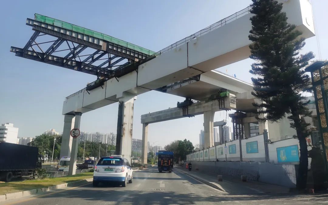 从2021年11月至2022年10月,深高速利用已建成桥面将钢箱梁进行整联焊接拼装、喷漆涂装后,让5联钢箱梁相继安全顺利地跨越深圳市交通繁忙的主干道——107国道及机场南路,使其成为跨城市主干道桥梁的施工典范。