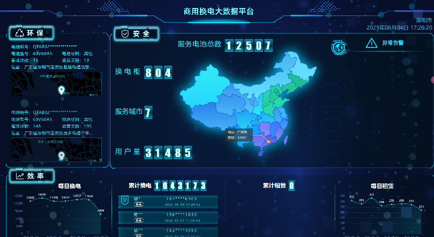 截至目前,试点已实现深圳全区域覆盖,累计投运换电柜800台,配置换电电池11000组,电池利用率达73%,换电柜平均柜效优于行业水平,为新能源出行服务升级提供了坚实支撑。