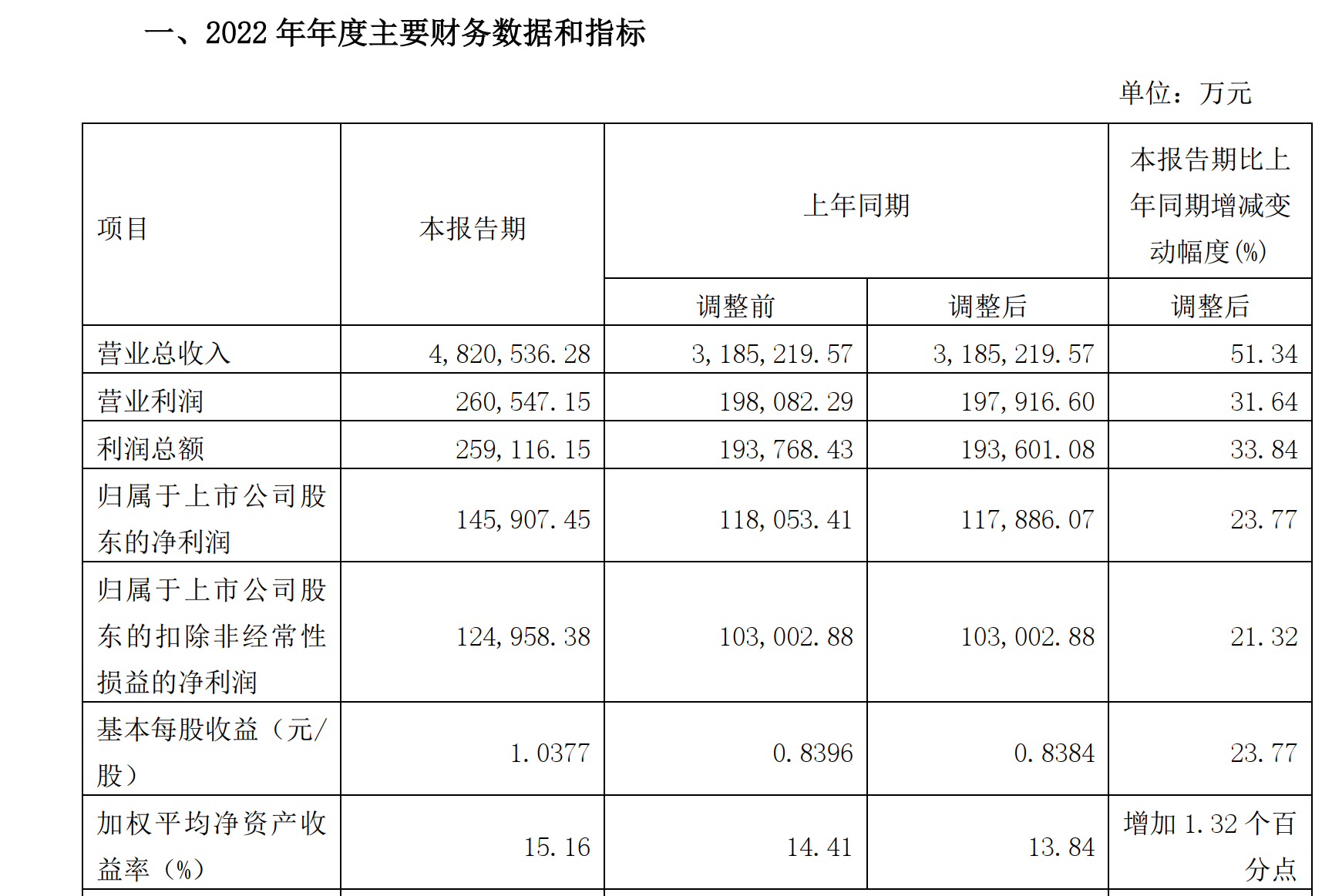 1月19日,厦门钨业(SH600549,股价21.21元,市值301亿元)发布2022年年度业绩快报,预计2022年实现营业收入约482亿元,同比增长51.34%;预计实现归属于上市公司股东的净利润约14.6亿元,同比增长23.77%。