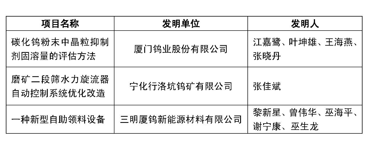 日前,福建省总工会公布了2024年百万职工“五小”创新大赛优秀成果获奖名单,厦门钨业及权属企业申报的三项创新成果在比赛中获得三等奖。