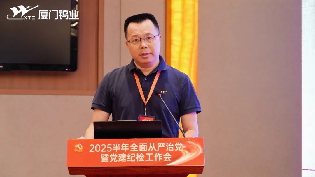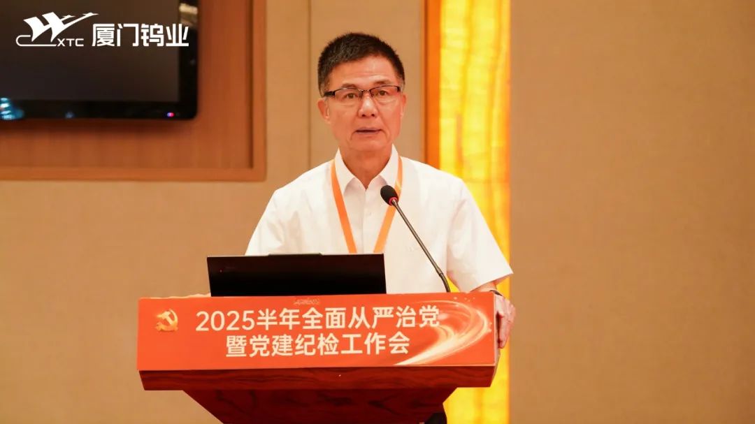 党委书记、董事长黄长庚回顾了上半年党委工作情况,分析了存在问题,对下半年工作做了安排部署。他指出,上半年,公司党委以实现产业链协同发展和高质量发展为主线,扎实开展党纪学习教育,深化拓展“深学争优、敢为争先、实干争效”行动,在“深、新、活”上持续创新党建工作,不断推进与生产经营深度融合,各项工作取得了一定成效。他强调,厦钨正处于转型攻坚的关键期,要坚定信心,增强责任感和紧迫感,为全力冲刺全年经营目标任务提供坚强的政治保证。下半年是冲锋冲刺、决战决胜的关键阶段,各级党组织要团结广大党员干部职工,以“干”字当头、以“实”字托底,对定下的目标、部署的任务,发扬“钉钉子精神”,一锤接着一锤敲,确保跑出加速度、冲刺全年胜。他要求,下半年,一要聚焦学查改闭环,在深化学习教育上持续发力;二要聚焦关键环节,进一步深化固本强基工程;三要聚焦思想舆论引导,在抓牢意识形态上筑牢防线;四是聚焦基层党建质量,在增强政治功能和组织功能上夯实基础;五要聚焦清廉厦钨建设,在纵深推进全面从严治党上一严到底;六是聚焦凝聚职工合力,在建设命运共同体上用心用情。