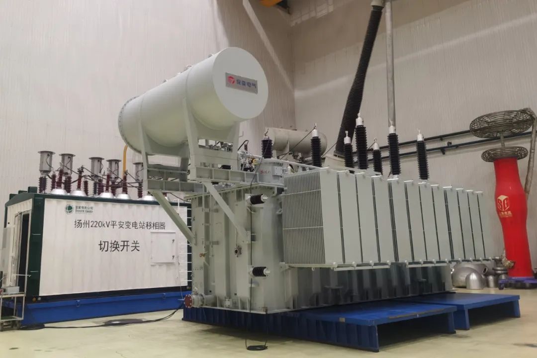 基于分体分布式开关的110千伏移相变压器,是保变电气为国家电网扬州分公司全新研制的模块化、紧凑型、多功能移相变压器,填补了国内空白。变压器本体和分接开关完全独立,不仅能减小产品体积,还能进一步拓展产品应用边界,只要根据实际需求对调相绕组进行设计,就可以通过机械开关和电力电子装置进行混合型调相,操作方便灵活。切换开关从移相变内部调整为外部放置,实现了空气绝缘、无油化,使产品更加安全可靠,投运以来一直安全稳定运行,实现了扬州220kV变电站合环运行,提升了新能源就地消纳能力。