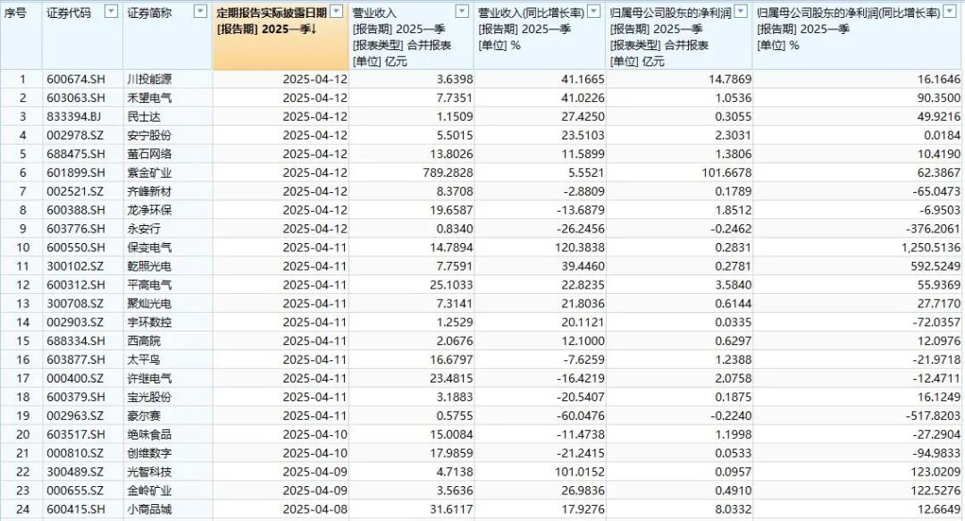 2025年首批一季报出炉!