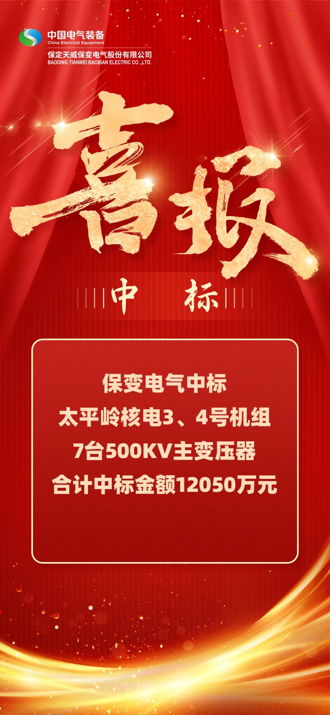 喜报!保变电气中标太平岭核电3、4号机组全部7台主变压器