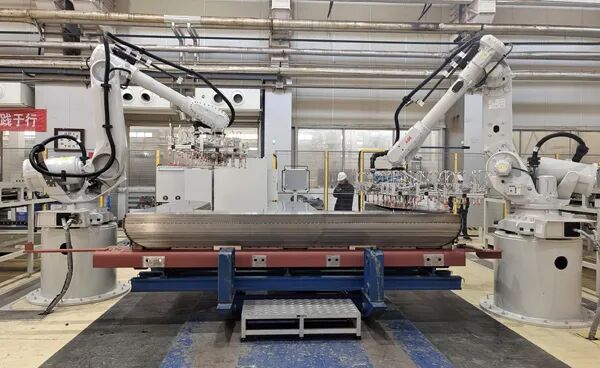 这一“智造”设备高效落地,离不开自动化绘图技术的硬核赋能。技术部门依托参数驱动绘图系统,实现数据自动生成、即时输出,无需人工二次处理即可被机器人快速调用。设备旁的智慧大屏则是名副其实的“全局慧眼”,将叠积进度、精度偏差、设备运行参数等关键数据实时可视化呈现,让生产状态一目了然,为操作人员精准调控、管理层科学决策提供了即时、可靠的依据。