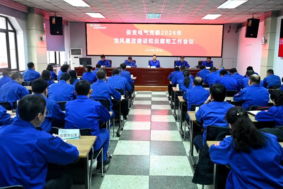 2月3日,保变电气党委召开2026年党风廉政建设和反腐败工作会议,总结2025年党风廉政建设和反腐败工作,部署2026年重点工作任务。保变电气党委书记、董事长许涛出席会议并讲话,党委副书记、总经理刘东升主持会议,党委委员、纪委书记李文周传达二十届中央纪委五次全会精神、国务院国资委2026年党风廉政建设和反腐败工作会议精神、集团公司2026年党风廉政建设和反腐败工作会议精神,并通报典型案例进行警示教育。公司其他领导班子成员出席会议。