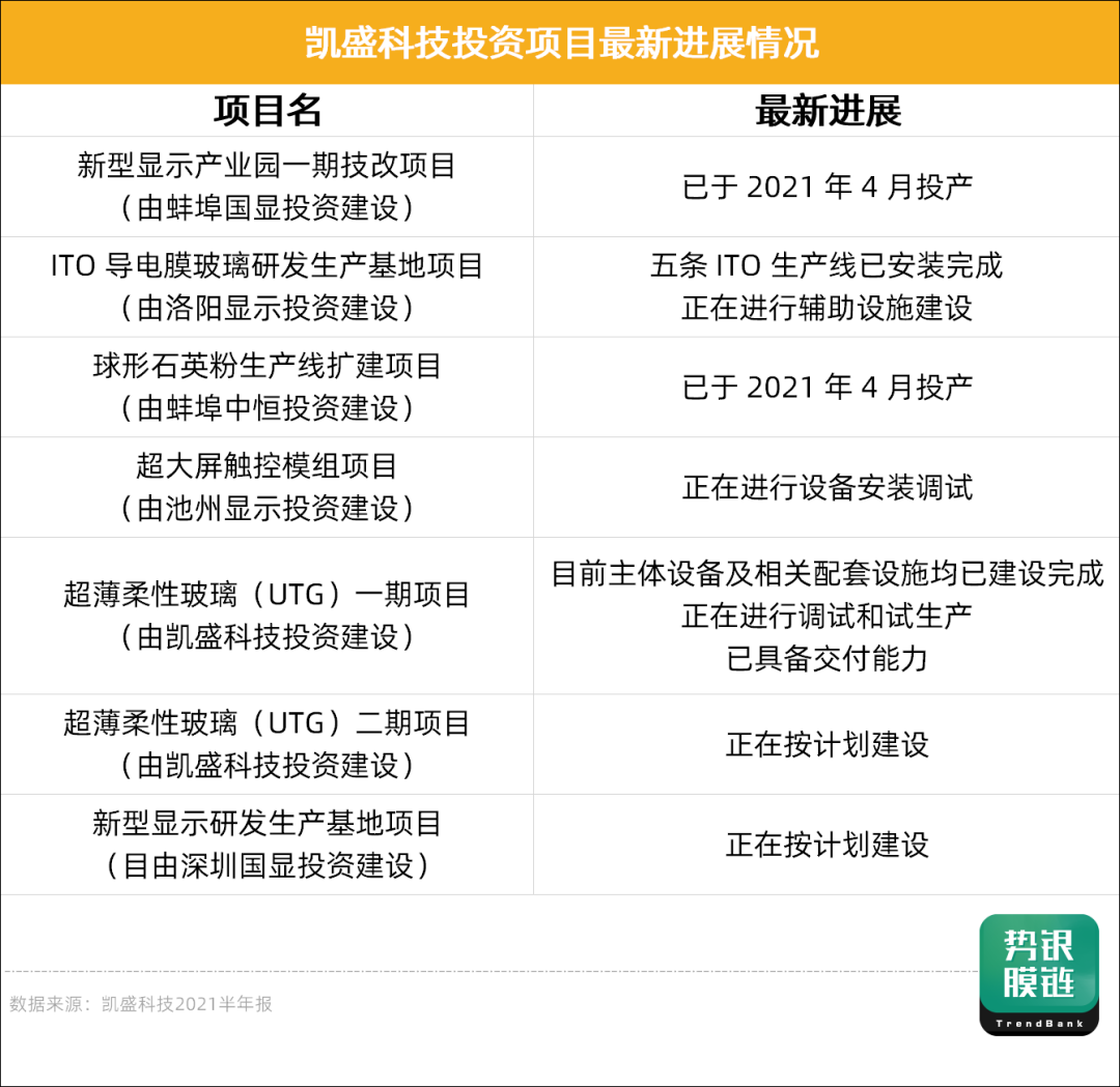 凯盛科技UTG一期项目主体设备已到场安装,试线良率行业领先