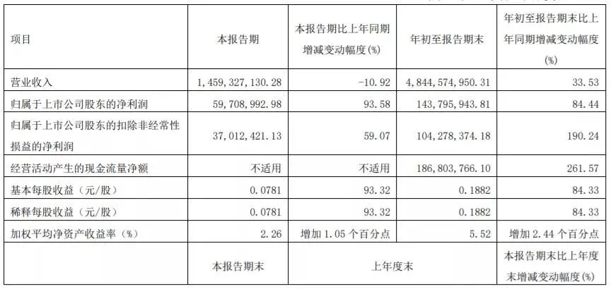 据凯盛科技2021年度第三季度报告显示,今年前三季度公司实现营业收入484,457.50万元,同比增长33.53%;实现归属于上市公司股东的净利润14,379.59万元,同比增长84.44%。