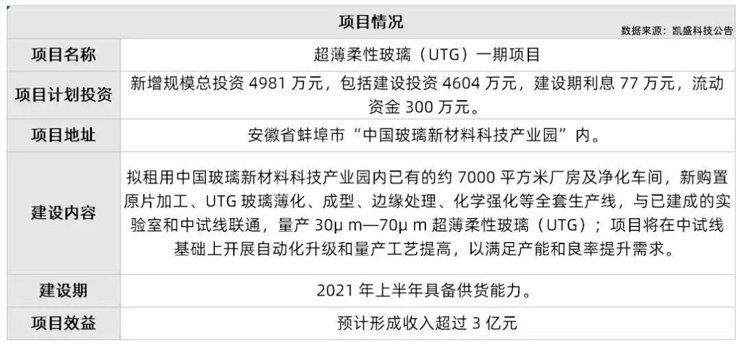 11月12日,凯盛科技再表示,目前UTG一期项目按订单生产,正常出货。