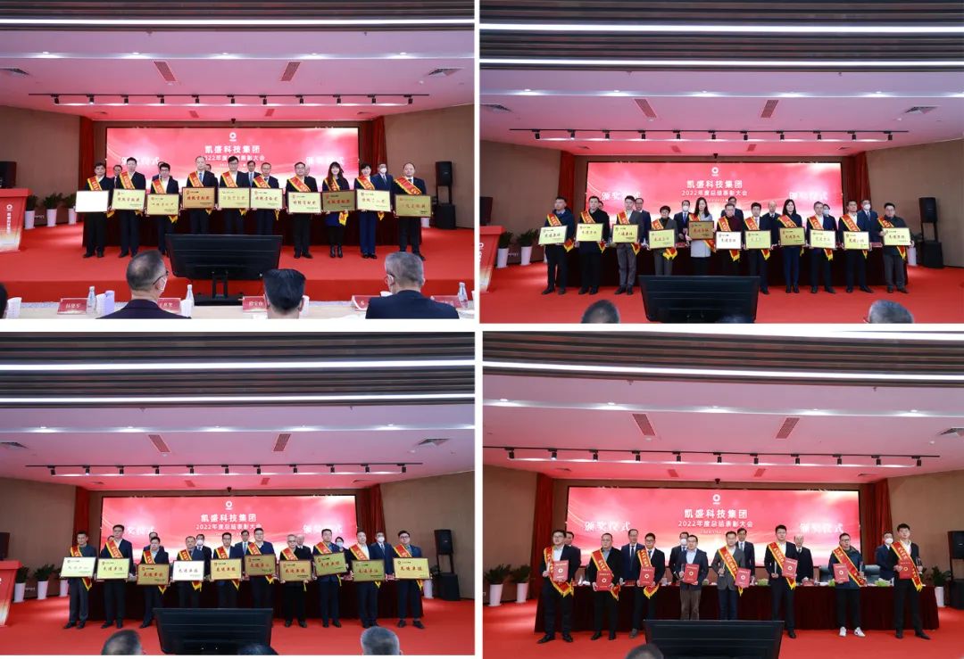 会上,凯盛科技集团党委副书记陶立纲宣读了年度表彰名单并主持颁奖。会议表彰了凯盛科技集团2022年度特殊贡献奖、先进单位、先进集体、劳动模范、先进工作者,表彰了优秀科技成果奖和优秀工程设计、优秀工程总承包、优秀工程咨询奖。中国建材国际工程、凯盛科技应用材料、宜兴新能源、深圳国显、宜宾玻璃5家企业依次上台交流发言。