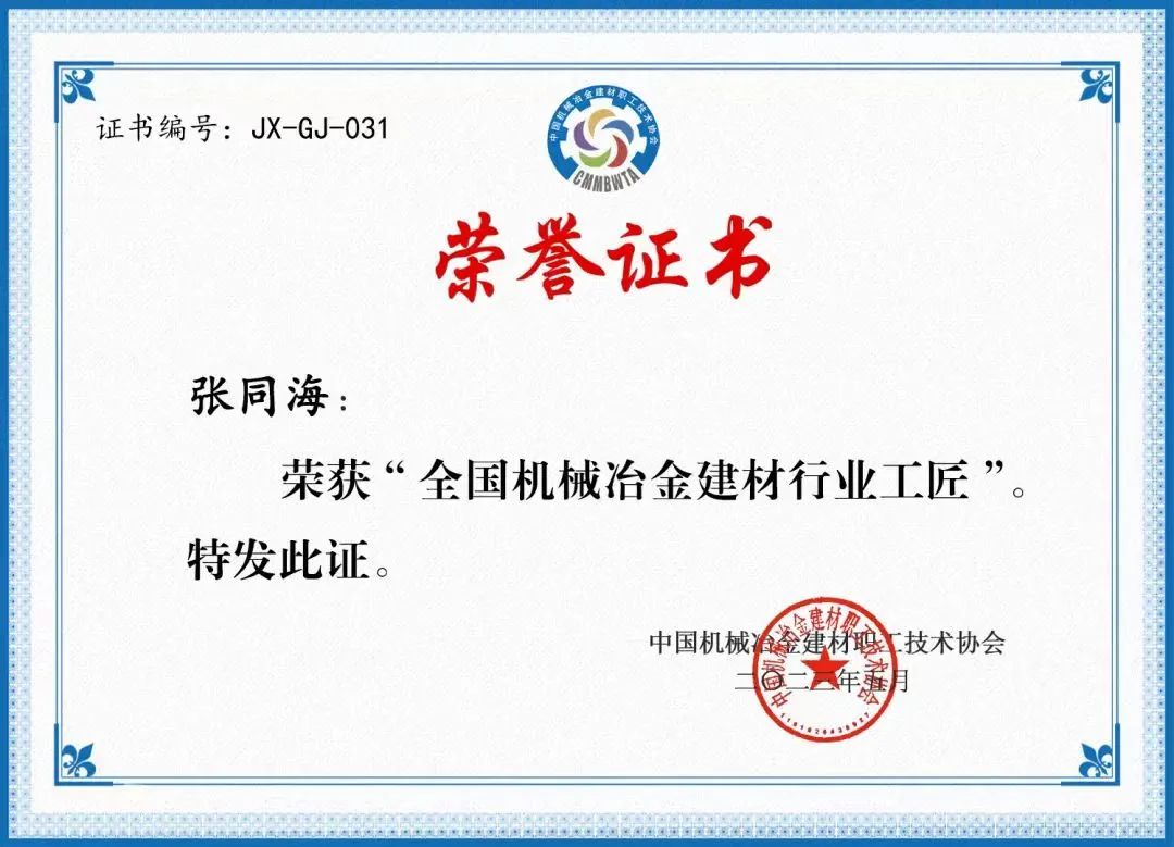 日前,中国机械冶金建材职工技术协会发布命名全国机械冶金建材行业“行业工匠”的通报,龙海玻璃生产制造部经理、高级技师张同海荣获“全国机械冶金建材行业行业工匠”。他参加工作30年来,一直在生产一线从事玻璃工艺技术创新、新产品研发、生产组织及技术难题处置等工作,立足本职,潜心钻研,先后有多项技术成果荣获国家实用新型专利及省部级以上科技进步奖,这些技术成果在生产实践中得到广泛应用,有力地促进了生产发展,并取得了良好的经营效益和社会效益。近年来,他先后荣获集团公司“劳动模范”、洛阳市“河洛工匠”等荣誉称号,2022年,被评为洛阳市劳动模范。