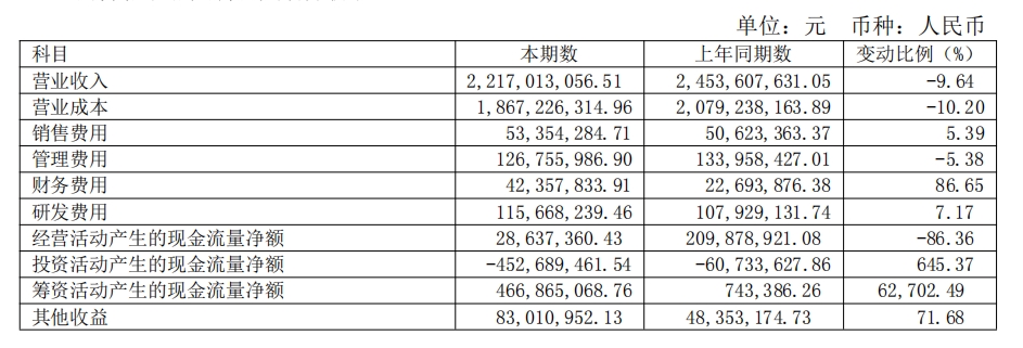 2024上半年公司实现营业收入22.17亿元,同比下降9.64%;净利润4163.79万元,同比下降47.60%。对此,凯盛科技并未在财报中给出业绩下滑具体原因,但通过对凯盛科技其他财务指标分析或可认为,成本管控失利是其业绩下滑的主因之一。