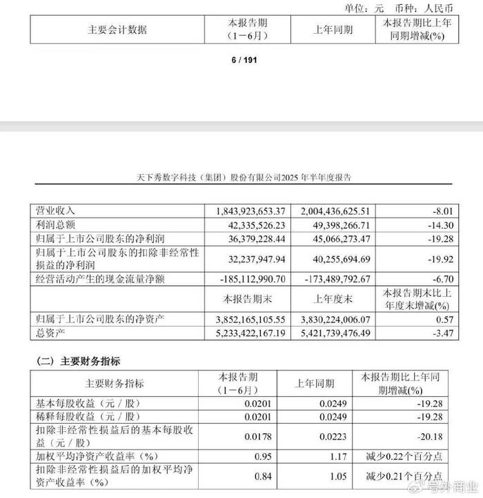 ▲天下秀2025年上半年财报