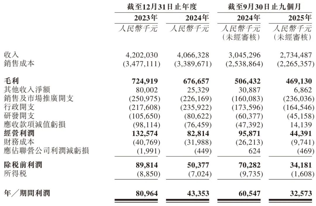 天下秀2025年前9个月营收为27.34亿元,较上年同期的30.45亿元下降10.2%;毛利为4.69亿,较上年同期的5.06亿元下降7.3%;经营利润为4439万元,较上年同期的9587万元下降53.7%;期内利润为3257万元,较上年同期的6055万元下降46.2%。