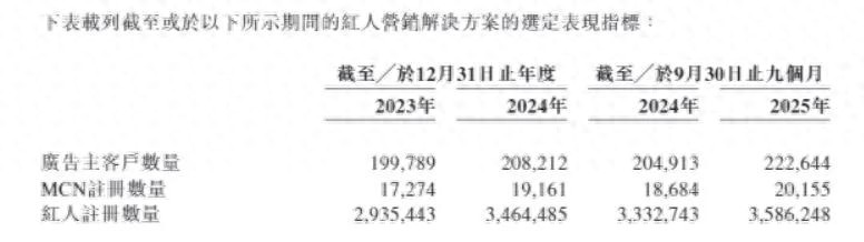 天下秀的业务主要分为红人营销解决方案平台业务、红人经济生态链创新业务两大板块,前者为其主要收入来源,即通过其专有平台WEIQ,为广告主客户提供红人营销解决方案。截至2025年三季度末,平台注册广告主客户约22.26万,入驻平台的MCN机构约2.02万,注册红人近358.62万。