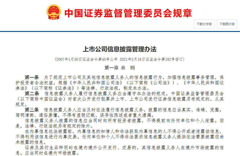 图片来源:中国证券监督管理委员会《上市公司信息披露管理办法》截图