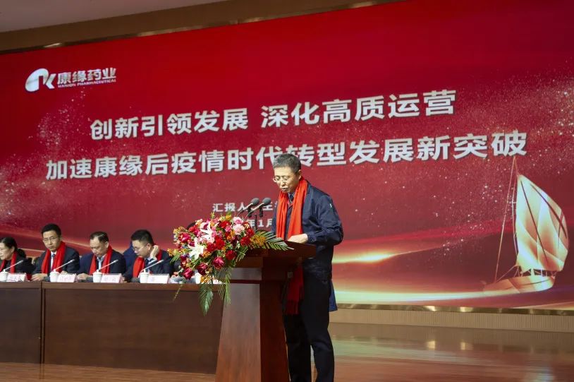 “创新引领发展,深化高质运营,加速康缘后疫情时代转型发展新突破……”康缘药业副董事长王振中同志作2023年股份公司工作总结暨2024年工作计划报告。他指出,2023 年是公司发展史上最具重要意义的一年。一年来,公司董事会、总经理室带领全体康缘人心往一处想、劲往一处使,克服市场困难形势,众志成城,披荆斩棘,以创新引领企业发展,以示范性合规推进高质运营,顺利度过改革转型发展“阵痛期”。这一年,创新成果巩固提升、综合实力不断彰显、合规建设飞跃升华、学术转型赋能发展、携手共享发展成果,同时康缘市场竞争力得到进一步巩固和提升,高质量发展不断向高水平迈进!