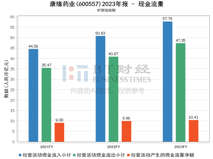 现金流量方面,康缘药业的经营活动产生的现金流量净额从上年同期的9.96亿元增长至10.41亿元,表明公司的现金流状况保持稳健。经营活动产生的现金流入和现金流出分别为57.76亿元和47.35亿元,公司通过有效的现金流管理,确保了经营活动的顺畅进行。