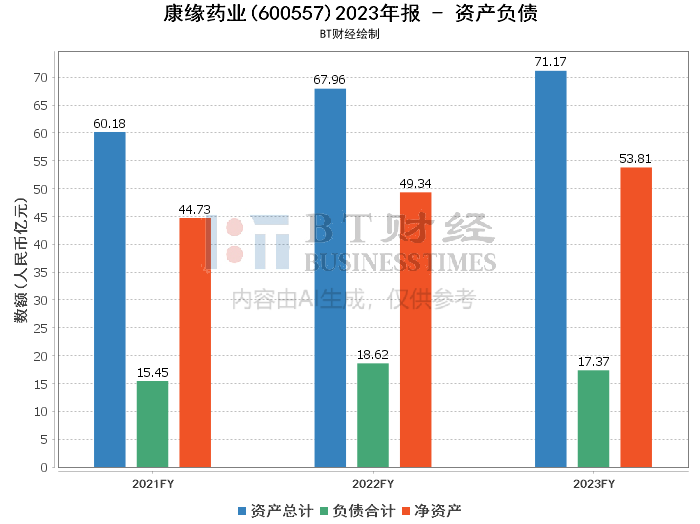 在资产负债方面,康缘药业的总资产从期初的67.96亿元增长到期末的71.17亿元,显示出公司资产规模的稳步增长。与此同时,负债总额从18.62亿元降低至17.37亿元,减少了负债压力。净资产从期初的49.34亿元增加到期末的53.81亿元,资产负债率也由27.4%降至24.4%,这些数据均反映出公司的财务结构正在不断优化。