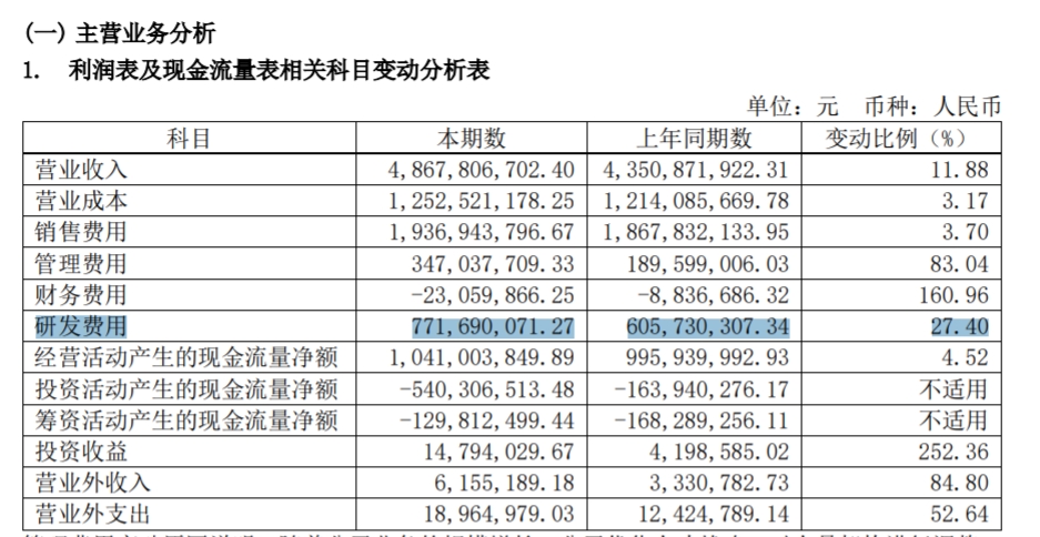 2023年报显示,康缘药业销售费用19.37亿元,同比增长3.7%;研发费用7.72亿元,同比增长27.4%。对比营收数据,销售费用占营收的比重约40%,研发费用占营收的比重约15%。此外,2023年财报显示,康缘药业2023年在职员工合计为5443人,其中销售人员2946人,技术人员577人。